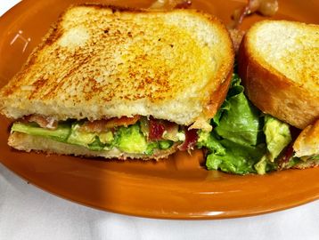 Grilled bread ~ zesty aioli ~ lettuce ~ tomato ~ avocado slices ~ cheese